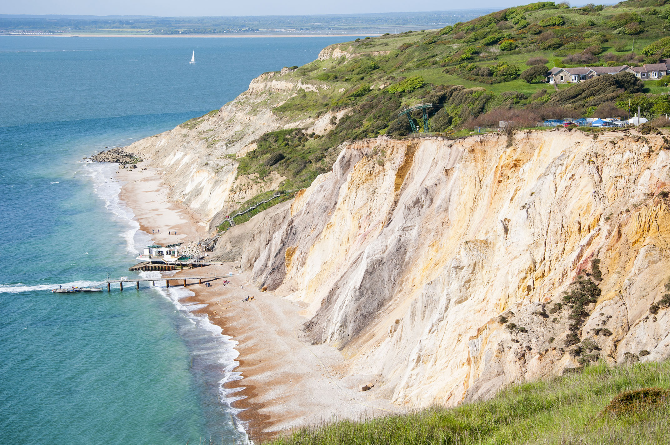 Allum Bay, czyli zatoka Allum jest znana z dwóch powodów. Po pierwsze startują z niej rejsy do Needles, jednej z większych atrakcji turystycznych IOW. Po drugie – słynne są kolorowe piaski zatoki.