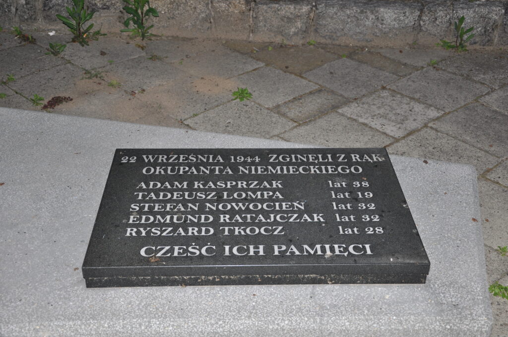 Pomnikiem upamiętniono pięciu więźniów KL Auschwitz, ofiary ostatniej publicznej egzekucji w Tychach, która odbyła się celem zastraszenia w okolicy Starej Poczty.